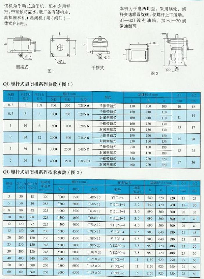 QL螺桿式啟閉機(jī)系列參數(shù)圖