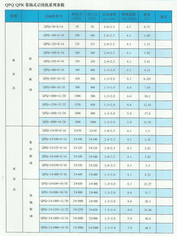QPQ.QPK卷揚式啟閉機系列參數(shù)