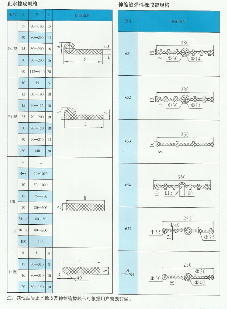 止水橡膠規(guī)格、伸縮縫彈性橡膠帶規(guī)格